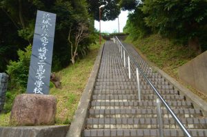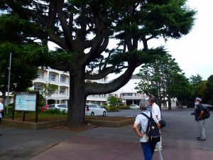 - 竜ヶ峰の高台にある「龍ケ崎二高」、ヒマラヤ杉の大木が圧巻