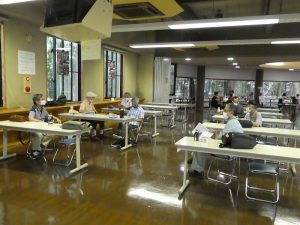 - まずはセミナーハウスで、ソーシャルディスタンスの打合せ&昼食