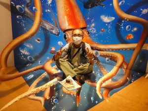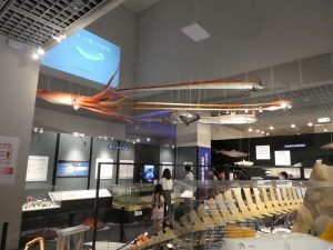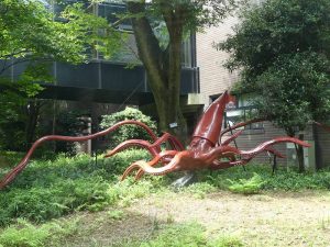 - 中庭に今回のスター、ダイオウイカの実物大モニュメント