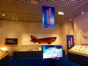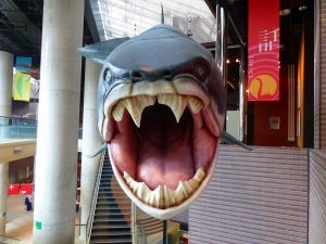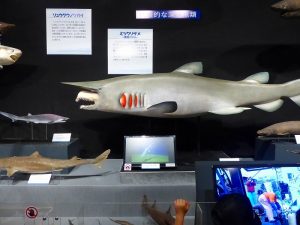 - 企画展示場外にも「サメ」が異様な顔でお出迎え