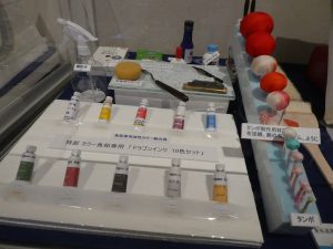 - カラー魚拓に使う専用インク、大小のタンポの紹介