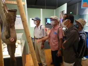 | 報 告 | ① 企画展示室「深海ミステリー2020 ダイオウイカが見る世界」水深200mより深い海域を「深海」と呼ぶそうです。「深海」は、暗黒・高圧・低温という特殊な環境ですが、そのような過酷な環境にも、多種多様な生き物が暮らしています。 この企画展では、茨城沖をはじめ、駿河湾・富山湾などの深海域に生息する様々な生き物、そして「深海」に関わる食や文化について紹介があり、さらに海底の地下資源から、深海ゴミの問題に至るまで、幅広く「深海」の現在と未来を教えてくれました。 ➁ 「カラー魚拓」 今回担当の知人のお一人として、山本龍香氏がおられますが、この度の企画展の一環として、「カラー魚拓で深海生物の魅力を伝える展示をされています。本来「魚拓」と言えば、釣った魚に直接墨を塗り、それを布なり紙に写し取って「釣果」を記録し、仲間に自慢する方法 と受け止められているようですが、山本氏の場合は、生身の魚の上に薄い布を置き、その上から独自に開発した魚拓用油性絵の具を用いて、その布の上から元々その魚が生きていた姿を再現する「間接法」なのです。 今回はその手法で制作した深海生物のカラー魚拓が、広い壁にぐるりと展示されており、「ダイオウイカ」をはじめ、「ラブカ」・「リュウグウノツカイ」・「ミズウオ」、そしてカラー魚拓を実際に制作している過程を映したビデオ映像など、圧巻の展示内容でした。 ➂ 「茨城県自然博物館」 常設展示見学 まずは「茨城の自然」ブロックから見学を開始、県内の動植物から鉱物・地質に至る解説や、絶滅危惧種の紹介など、はく製展示なども豊富にあって、理解しやすくなっていました。 「地球の生い立ち」ブロックでは、太陽系の生成から始まって、地球の誕生と生物の進化、そしてお馴染みの恐竜の世界では、白亜紀における、ティラノサウルスの親子とトリケラトプスの戦いの様子を迫力ある動く展示があり、子供相手を越えて大人も楽しめる工夫がされていました。 「自然の仕組み」ブロックでは、土の中の生物を拡大して見せたり、森の中を再現して、そこに生息している生き物を探し出せるようにしたり、河川の上流部・中流域・下流部に分けて、魚類や鳥類の生きざまを見せていました。 ほかにも「進化する宇宙」・「生命の仕組み」・「人間と環境」の各ブロックもありましたが、 皆さん少々お疲れ気味で、ここはざっと眺めるだけにして、またの機会に譲ることにしました。 |
