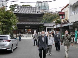 | 行 程 | : | 駅→泉岳寺→伊皿子坂→二本榎通り→大石義雄他忠烈の跡→高輪消防署→桂坂→ 高野山東京別院(昼食・法話)→洞坂→東禅寺→高輪海岸石垣→高輪神社→ 高輪ゲートウエイ駅 (全行程6km) |