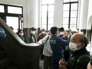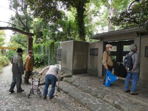 - 旧細川藩邸内の大石良雄外16名切腹の地を見る