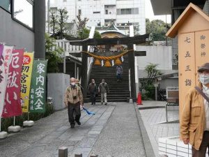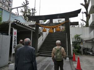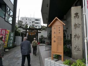 | 高輪の総鎮守、室町時代中期創建とされる稲荷神社で、境内には聖徳太子を祀った太子堂や庚申堂のある猿田彦神社があり、江戸時代には有名だったようだ。 | ||