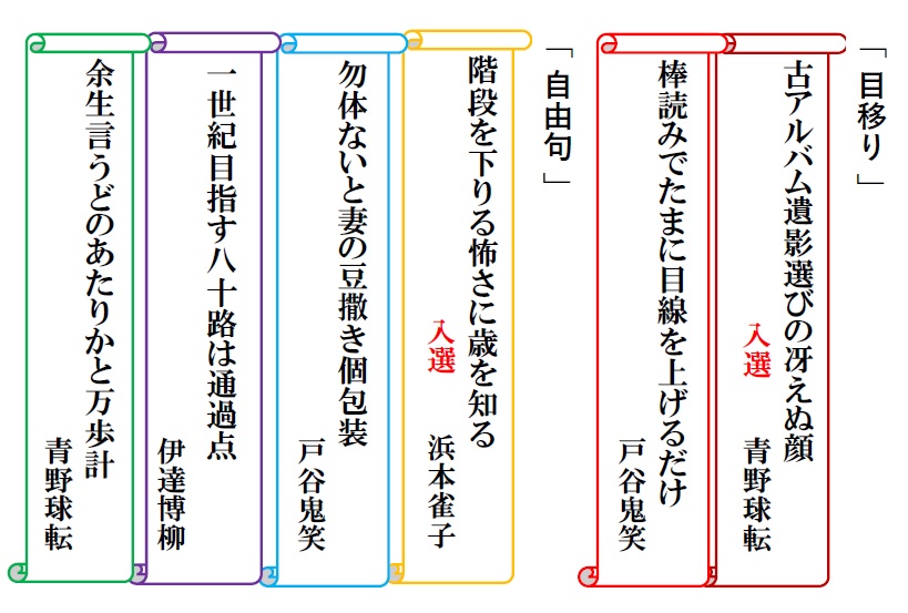 投句・互選・点盛り・評価・提案等を続け、全投句60句の中からホームページ掲載句12句・うち入選句3句を