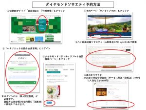 京都ソサエティの写真を添付すると共に「松愛会HPからの予約方法」と「全国の施設一覧」も用意しました。