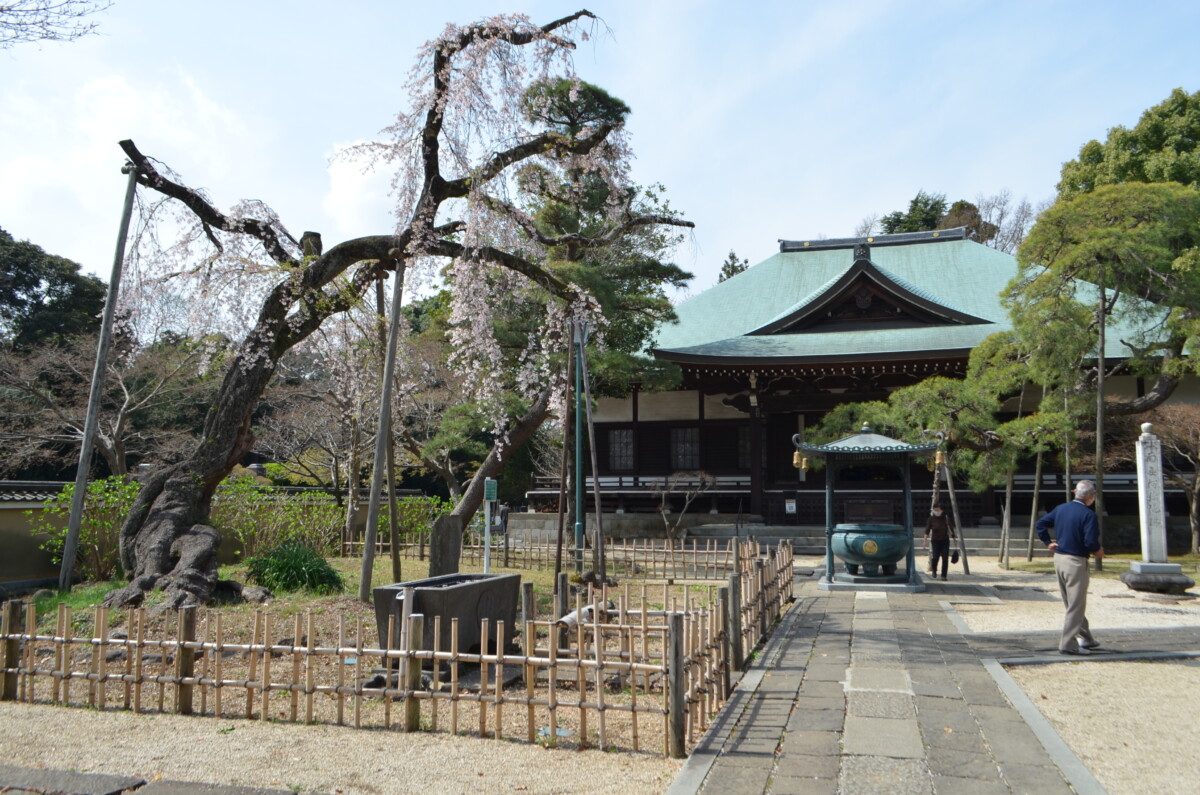 その後に千代田線「北小金駅」近くの「東漸寺」まで行ってきました。こちらも地元では知る人ぞ知る春は桜、秋は紅葉の名所です。こちらも樹齢300年以上のしだれ桜が有名ですが、参拝に来られたご婦人は「往年のようなボリュウムが無くなり残念です」とがっかりされていました。