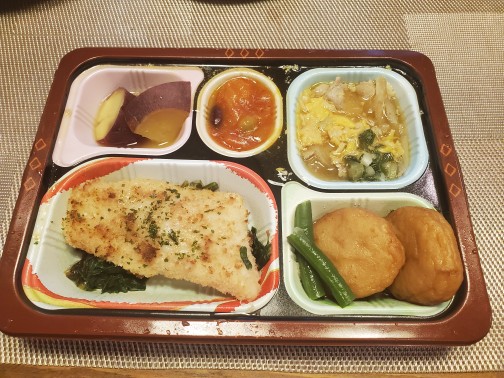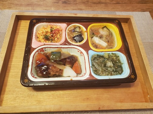 鰈のムニエルも黒酢酢豚も美味しくいただきました。何よりもトレイがしっかりした作りで、いわゆる弁当を食べる感じよりもトレイで食べている感じが満足度に繋がったのかと思います。
