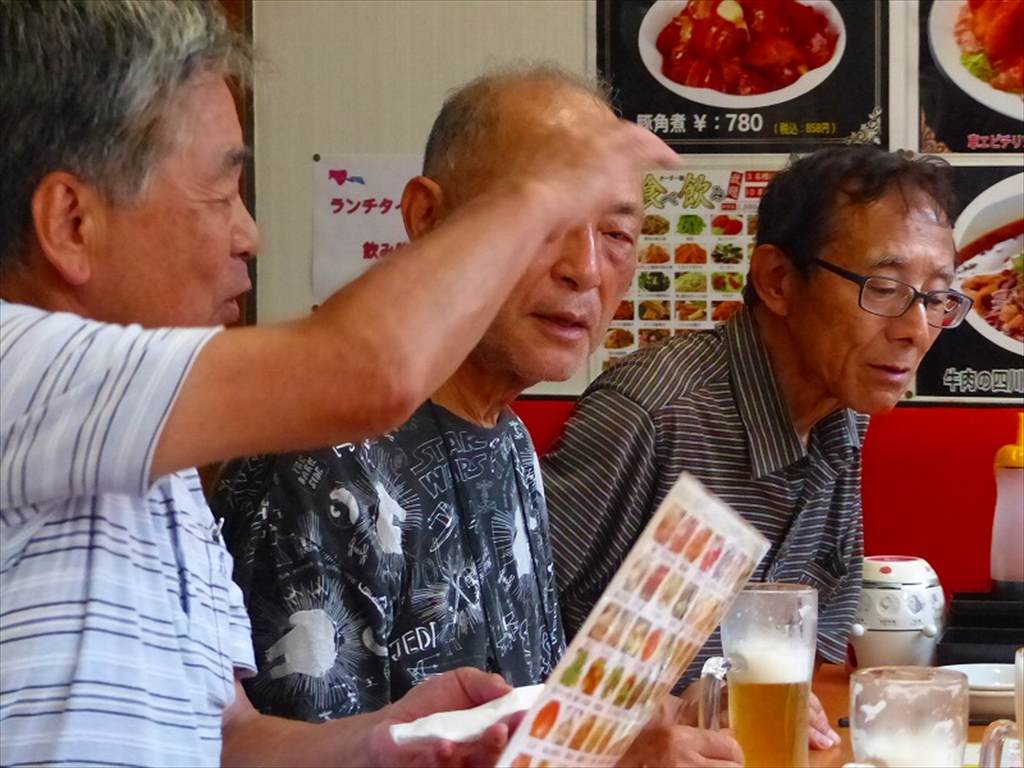 少し早めに反省会・打上げを我孫子駅前『福照飯店』で行いました。飲み放題・食べ放題@3,280円というお手頃感で、しかも時間が早くて貸し切り状態だったため、高齢者集団の割に、よく食べ、よく飲み・・・お店のおかみさんも驚いたようでした。猛暑に負けることなく予定の行程を完了した一日でした。<文章:鎌田 写真:山下、鎌田、上田>