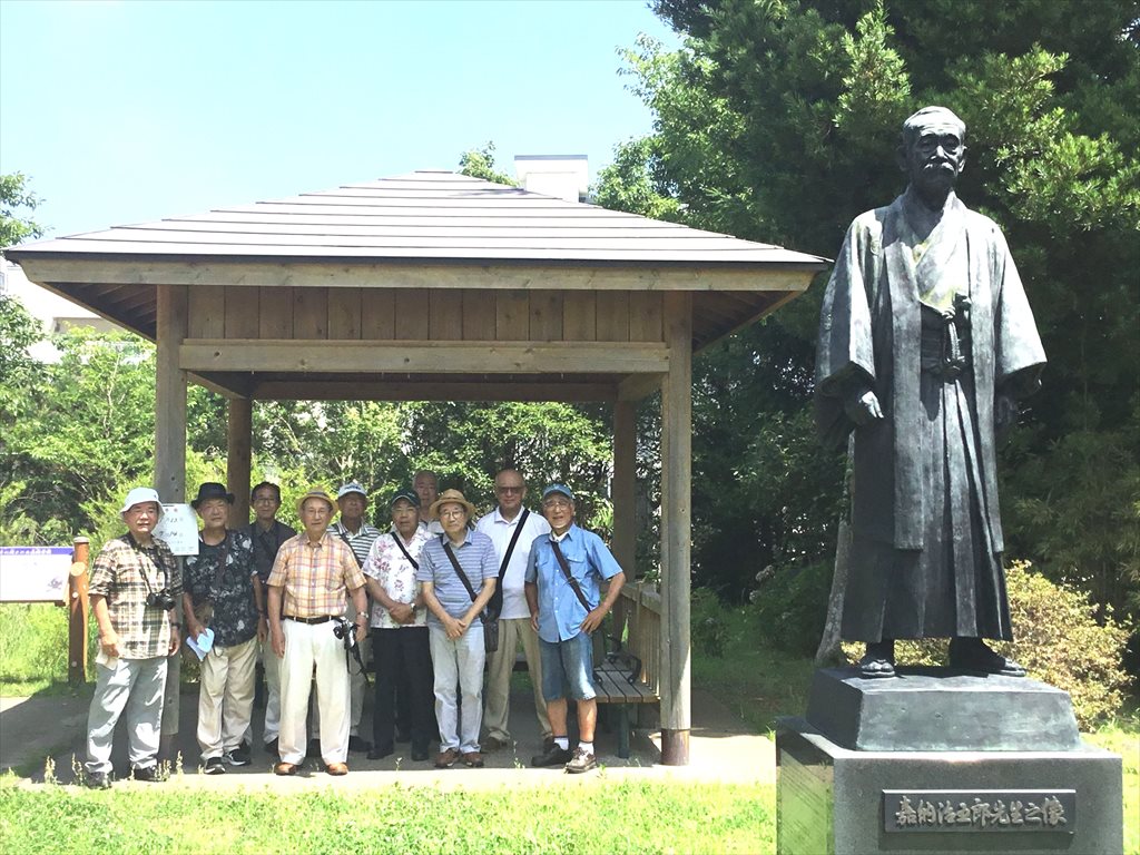 元気を付けようと入ったのが、我孫子の名店うなぎ屋『宇田川』さん。贅沢に特上うな重を全員で賞味し、気を取り直して『鳥の博物館』へ。メンバーの中では最年少の石和会員は入館料300円を払いましたが、それ以外のメンバー全員が70歳以上入館料免除の恩恵にあずかり、390種にも及ぶ鳥の剥製標本を見学しました。続いて道路向かいにある『水の館』を見学、最後は手賀沼公園の『平和の記念碑』で記念写真を撮り、我孫子駅に戻ってきました。猛暑の中での移動は市中バスをフルに利用し、メンバー最高齢83歳の吉野会員の体力を考え、熱中症に気を付けての漫友会でした。