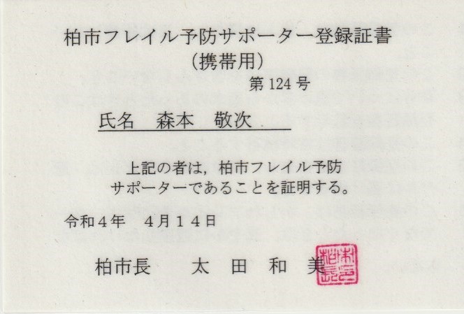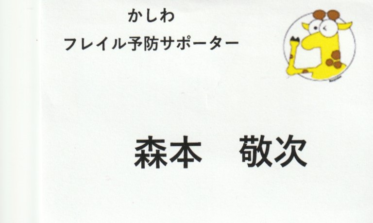 「か」(しっかり噛む=栄養)「し」(しゃべる=社会参加)「わ」(笑う=運動) こうしたサポーター活動を通じて自身の健康維持に努めていきたいと思っています。