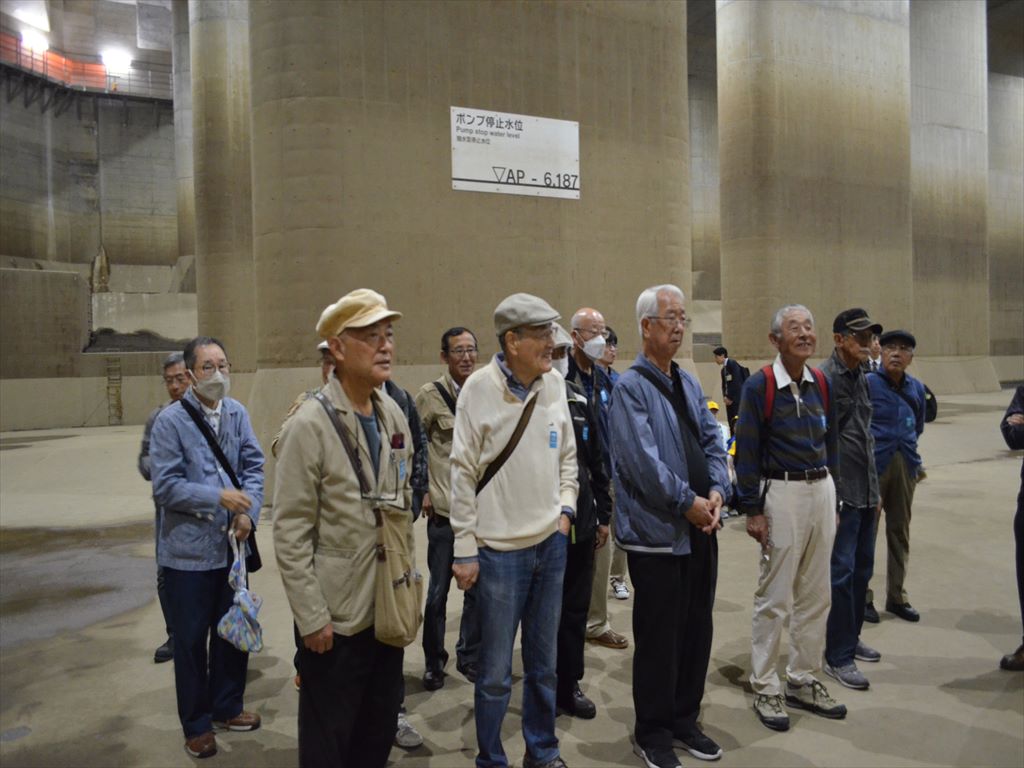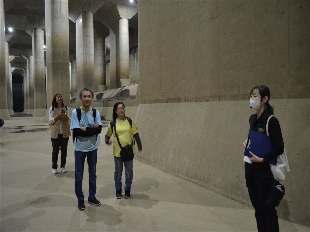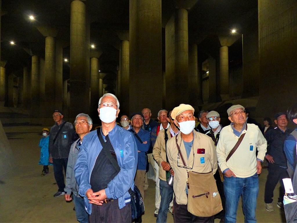 今回、世界的にも注目されている首都圏外郭放水路、4コースある見学コースから一番オーソドックスな「地下宮殿コース」を選択。見学の後、龍Q館3階の展示室にて説明員よりビデオ、模型による仕組み、指令室の詳細な説明を受け、参加者全員更なる理解を深めることが出来、有意義な社会見学会になりました。