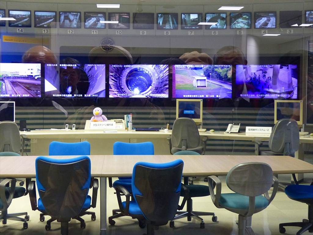 - ここが、放水路の情報を握る中央操作室。TV番組でも利用されるとか