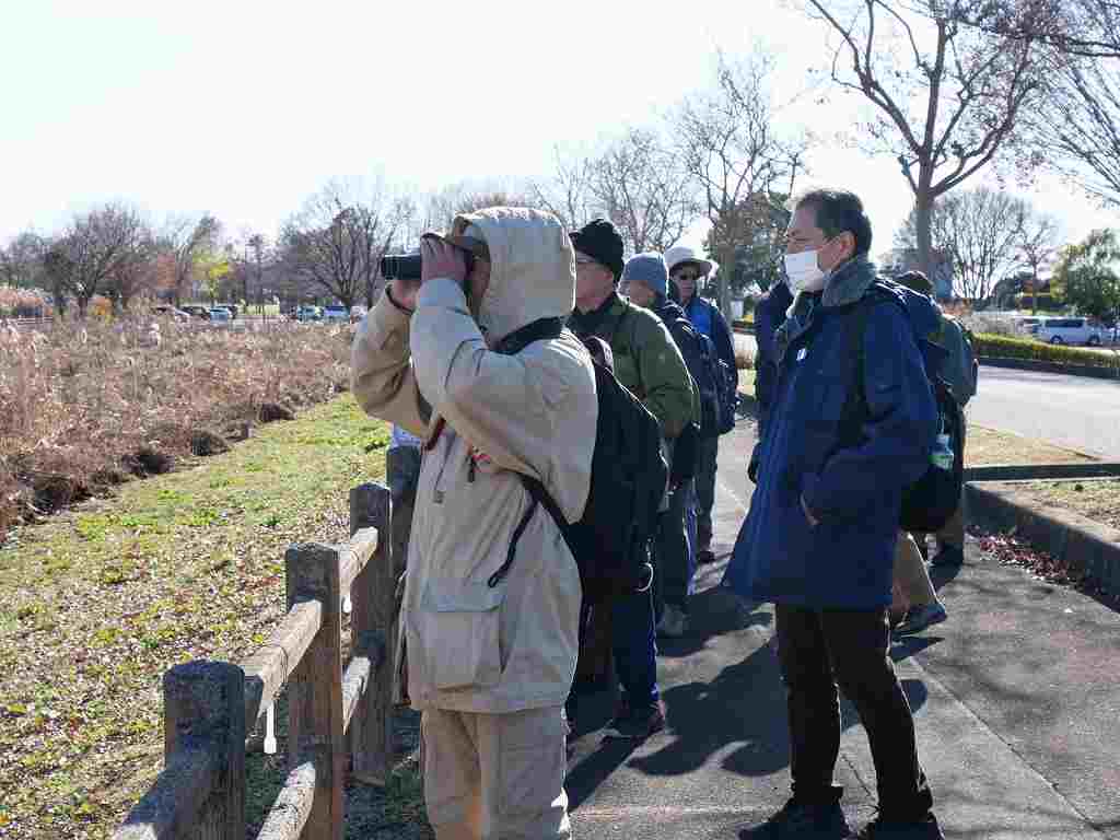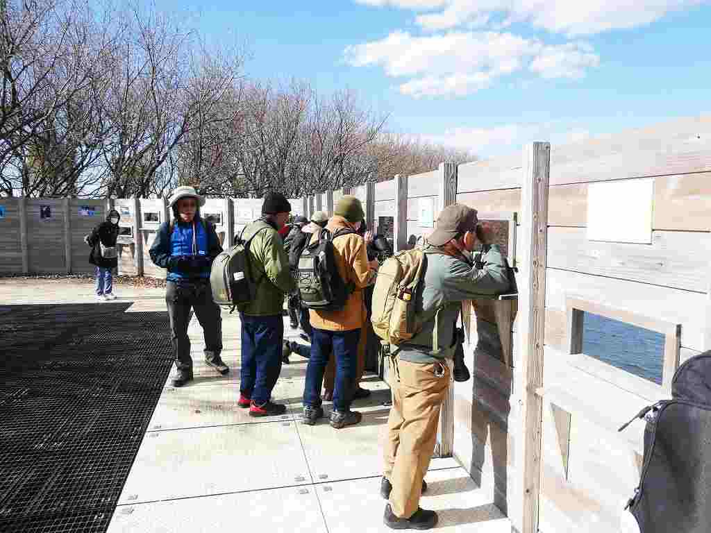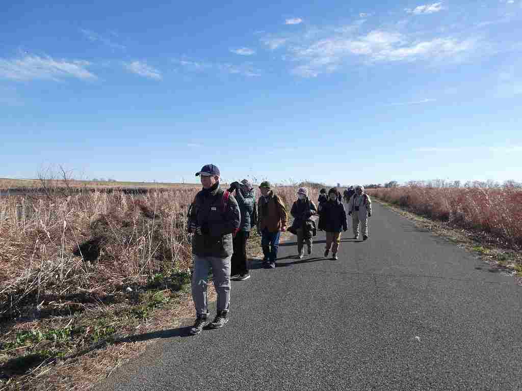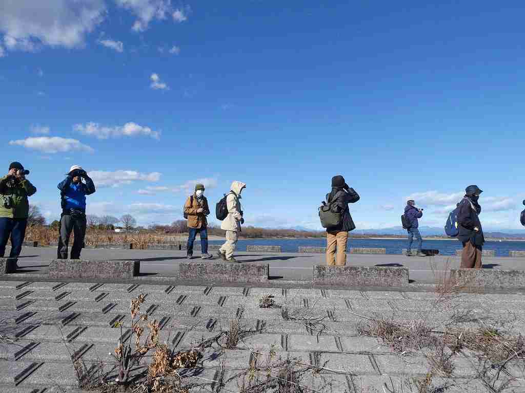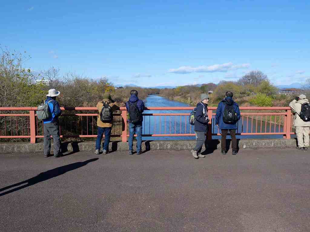 当会としては初めて谷中湖北側の池内水路まで足を延ばし、コウノトリやメジロガモを