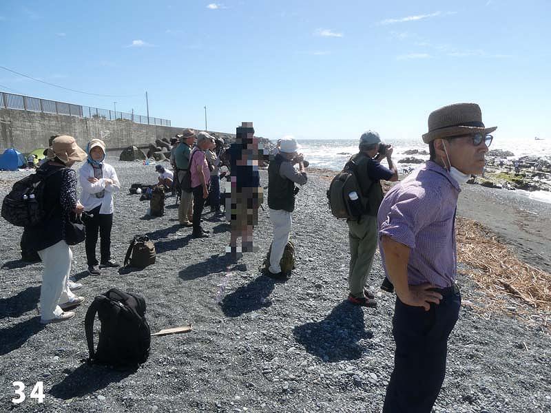 今回の観察会は残暑厳しい中の実施となりました。 照ヶ崎海岸に到着すると、多数のカメラマン