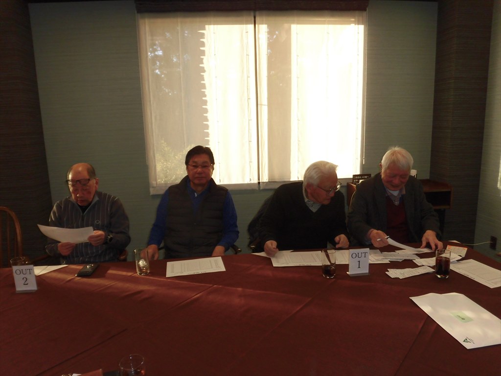 今回も寒暖差の激しい気候の為か体調不良が多く参加者は例月に比べやや少なめでした。厳しい天気でしたが全員が元気にホールアウトして表彰式とパーティを実施してお互いの健闘を称え懇親を大いに深めました。引き続き総会を開催して2024年会計報告と2025年運営方針が満場一致で承認されました。永年に亘り活躍された宮地吉松さんが体力面で退会されるご挨拶がありました。また、病気療養から今回より復帰された高田三男さんが力強い抱負を述べられました。