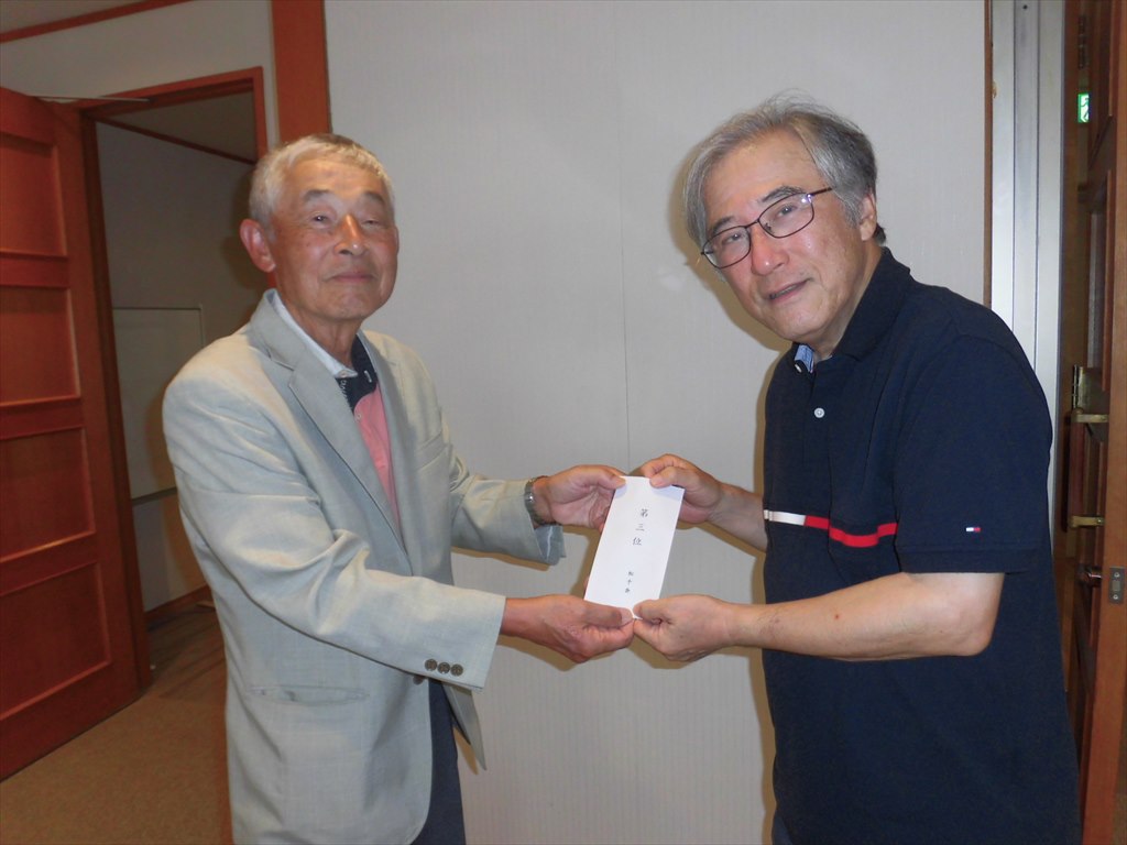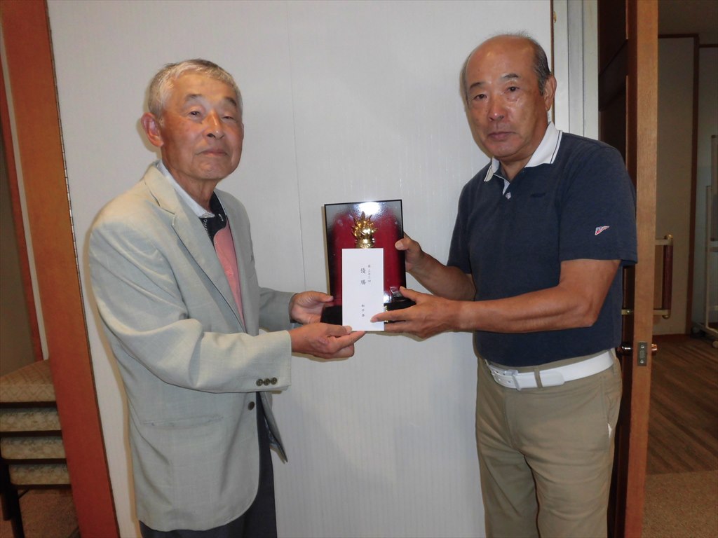 三人が同ネットとなる大混戦を制して優勝したのはネット1オーバーで大会規約により小川 利明さんが、2020年9月以来5年振り久々の6回目の栄冠を獲得しました。 準優勝は同ネットの大東 尚史さん、3位は同ネットで昨年の入会以来初のベストスリー入りの満冨 隆さんでした。 季節の変わり目ですが体調管理に留意して、多くの会員皆さんの奮っての参加をお願いします。