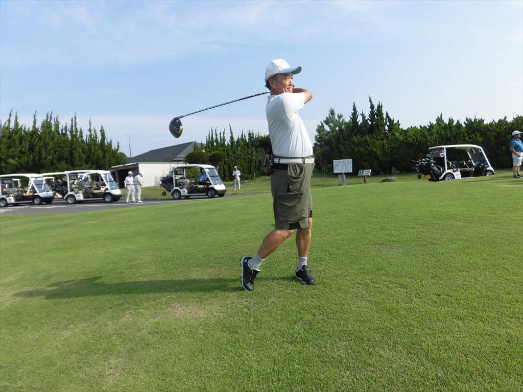第373回 松千会 月例ゴルフ大会が、18日(木)に千葉新日本ゴルフ俱楽部・外房コースで、やや蒸し暑いながらも晴れの天気の下で開催されました。同ゴルフ場は千葉県市原市にある丘陵コースです。フェアーウエーは比較的に広いながら左右OBがあり、打ち下ろし打ち上げのホールが多く、ショットの正確性と距離感が求められる戦略性の高いコースです。グリーンは暑さ対策の為か遅いものの、カップ周りの微妙な傾斜の読みがスコアーメイクの鍵になります。 全員が元気にホールアウトして表彰式とパーティを実施してお互いの健闘を称え懇親を大いに深めました。特に距離があり難しかったショートホールや激戦となったゲーム展開で大いに盛り上がりました。