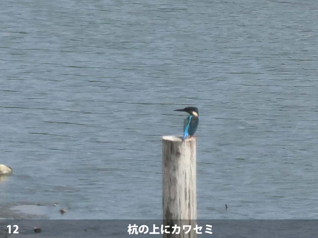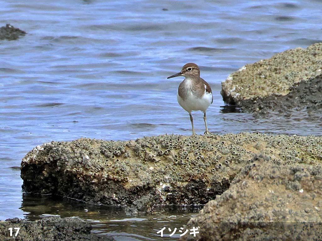 カルガモ、コガモ、キジバト、イソシギ、キアシシギ、カワウ、アオサギ、ダイサギ、コサギ、トビ、 カワセミ、コゲラ、オナガ、ハシボソガラス、ハシブトガラス、ヒヨドリ、ムクドリ、スズメ、ハクセキレイ [外来種]