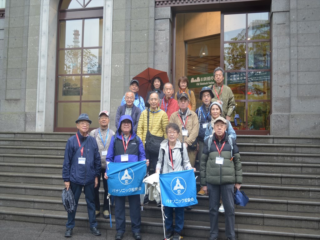 JR新橋駅銀座口に会員16名が集合、担当よりコース概略説明してスタートしました。