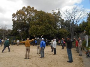 生瀬駅前は、冷たい風が吹き、体に寒さを覚えながらスタート。武庫川に架かる西宝橋を渡り、住宅街の上り坂を15分程歩くと、「青葉台公園」ここで担当幹事より、コース説明と軽い柔軟体操を行いスタートする。会長より総会時に新年度会費徴収の協力をお願いをした。