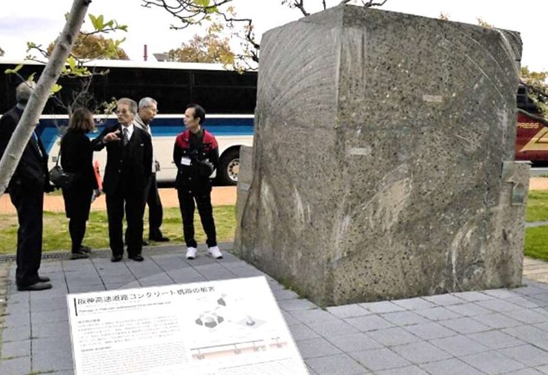- 倒壊した阪神高速道路コンクリート橋脚の一部