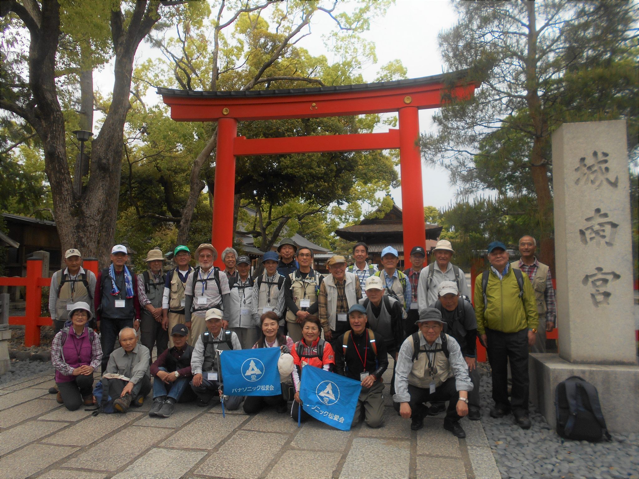午後は方除けと交通安全の神様で知られる城南宮に立ち寄り、集合写真を撮り、休憩を兼ね参拝をした。