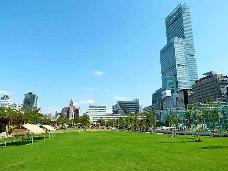 見学後は、「てんしば」 天王寺公園入り口付近の芝生広場