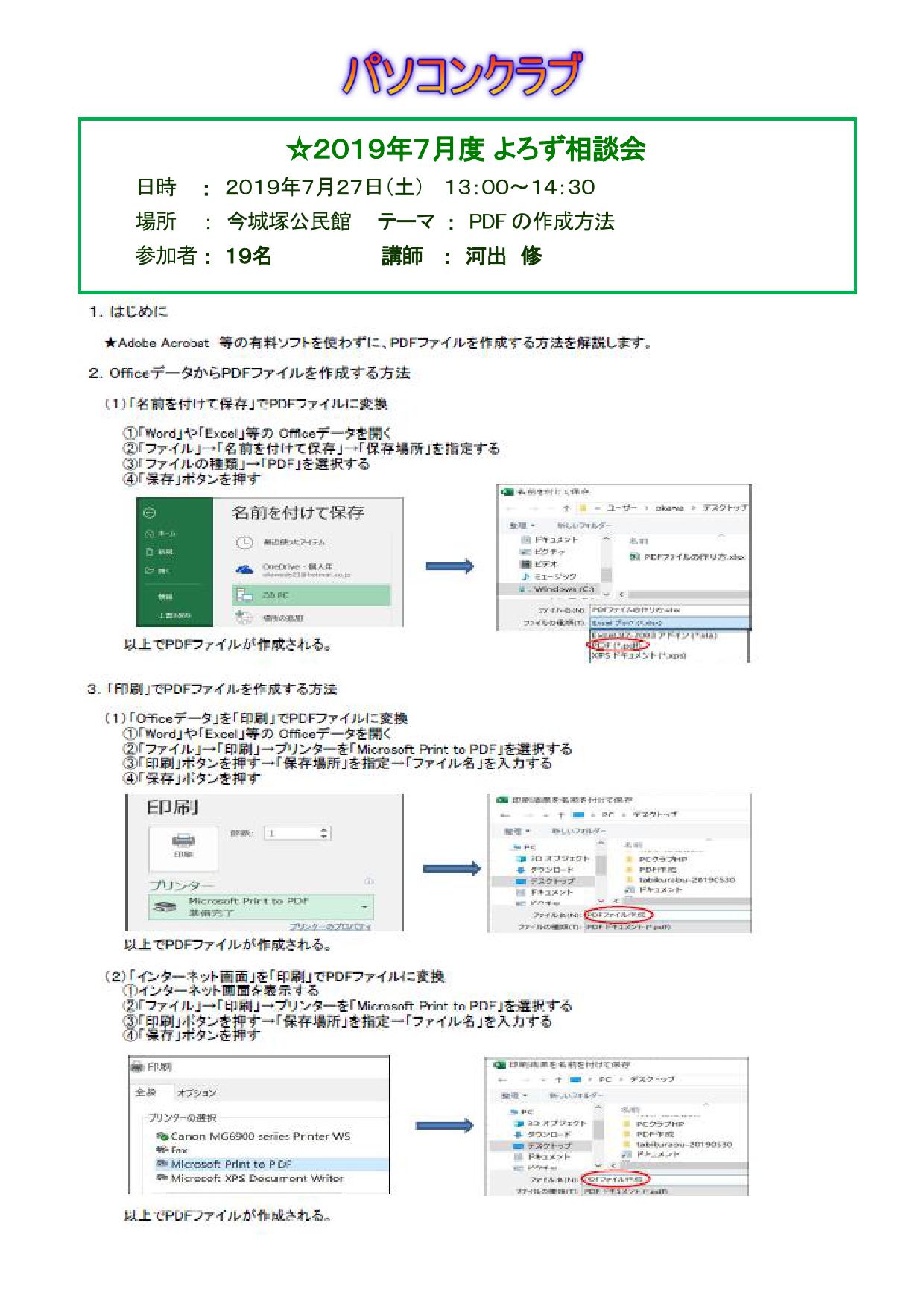 2019.07.28 パソコンクラブ, 同好会 パソコンクラブ 2019年7月度実施報告 ★プロジェクターを使って、質疑応答を行いました。 (配布資料のリンク) パソコンクラブ, 同好会 コメント: 0 会員専用 支部マップ前の記事 新北摂会ゴルフ 第108回コンペ実施報告次の記事