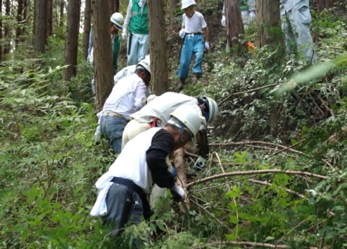 ・実施内容 : 公園内の除草作業と創造の森内のヒノキ間引き伐採・枝打ち等
