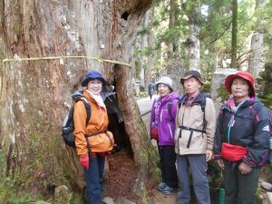 昼食後は、奥の院口から弘法大師御廟の参拝と中の橋駐車場まで自由散策として、途中樹齢百年の杉の大樹、歴史に残る諸大名の20万基を超える墓碑、産業発展に貢献したパナソニックの供養塔で参拝しました。