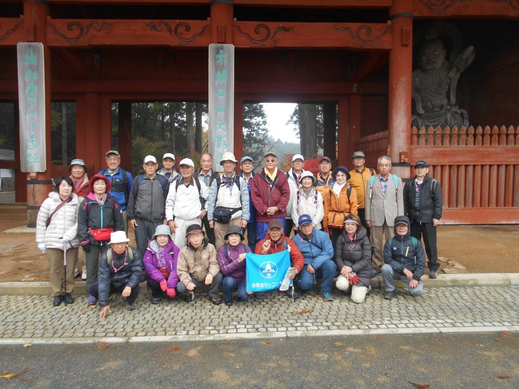 高野山大門南駐車場に10時30分過ぎに到着し、出発点の大門にて集合写真を撮る。