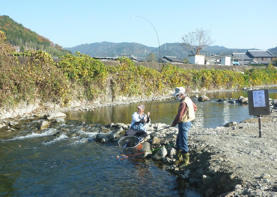 引 き を 楽 し む こ と が で き ま す。 12 時 に 世話役 さ ん の 合図 で 、 釣 り 競技 大会 終了 で す 。