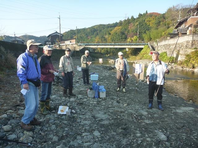 本年度 か ら 例会 と し て 始 め ま し た。 場所 は 、 摂津峡 上流 の 芥川 管理 釣 り 場 で す。当日 は 、