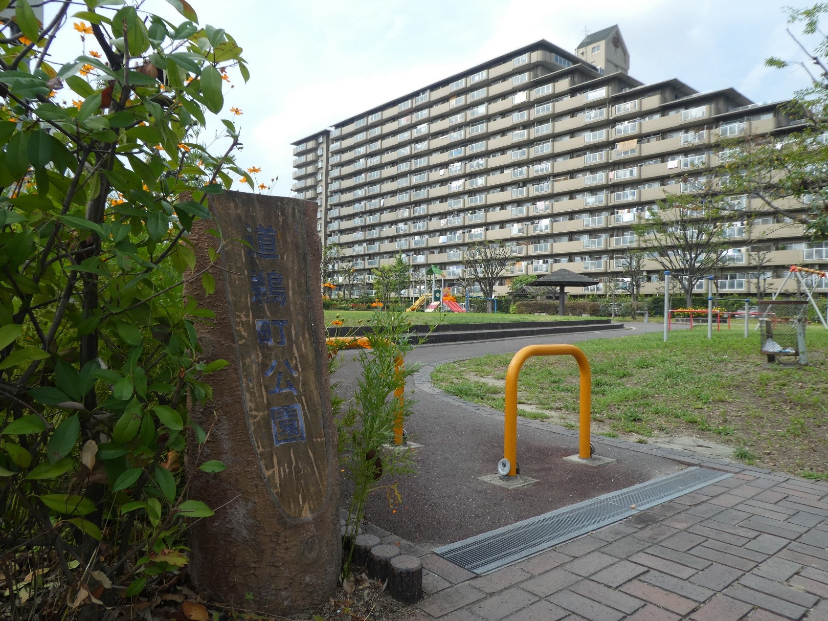 - 「道鵜町公園」と隣接するマンション