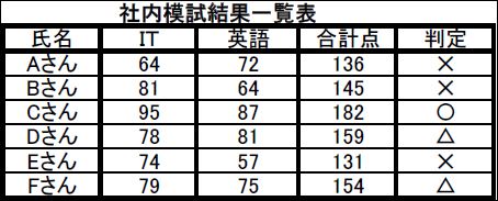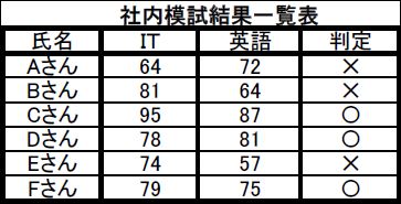 ●「ITが70点以上かつ英語が65点以上」なら〇、それ以外は✕