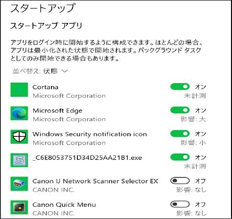 「スタート」⇒「設定」⇒「アプリ」⇒「スタートアップ」を開く