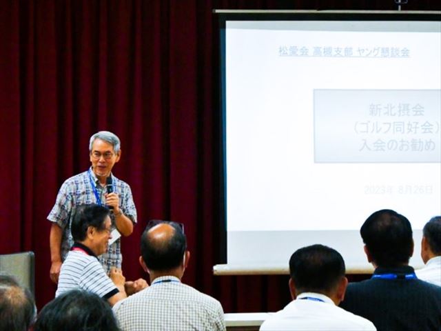 ・4年ぶりのヤング懇談会で初参加の方が多く見受けられました。私も松愛会入会当初は、活動内容が分かりませんでした。 先程、宮下支部長より松愛会活動や高槻支部の取り組み、同好会世話役の方からのご紹介等で皆さんは松愛会活動をご理解頂いたと思います。