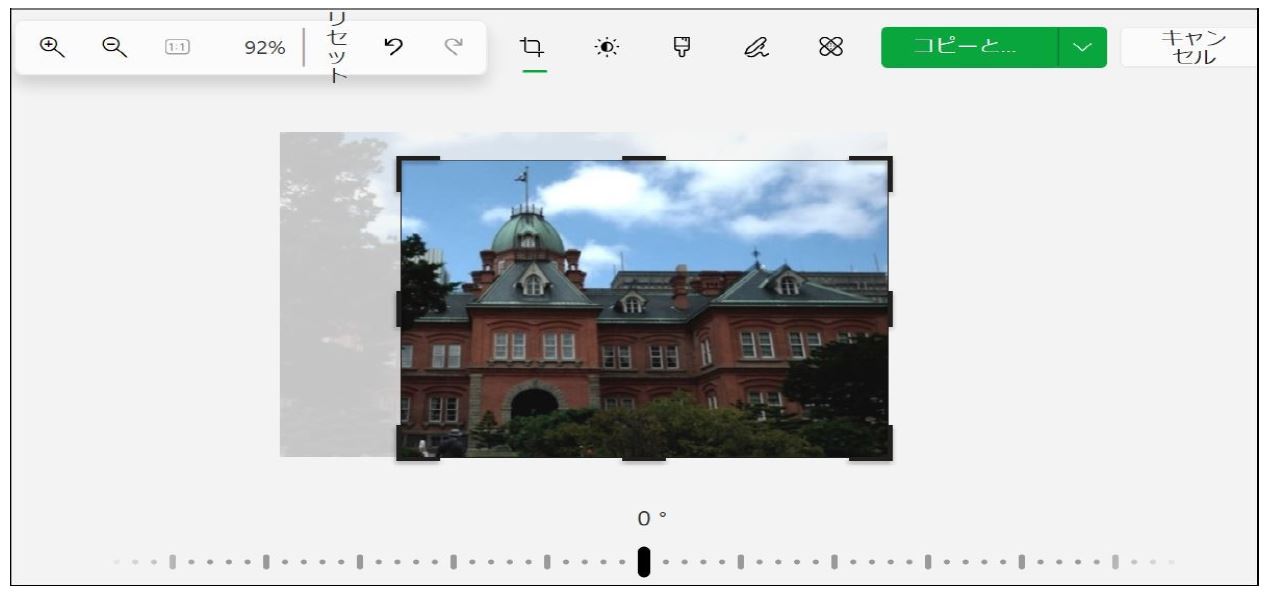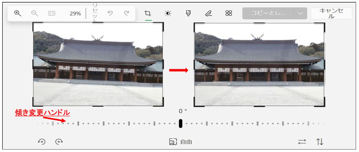 ●「傾き変更ハンドル」を左右に動かせば画像の傾きが変更できる