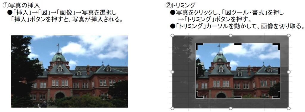 ① トリミングの方法:画像の周囲の黒枠を動かして、不要な部分を削除する