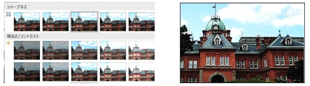 ●「シャープネス」と「明るさ/コントラスト」選択画面が表示される。
