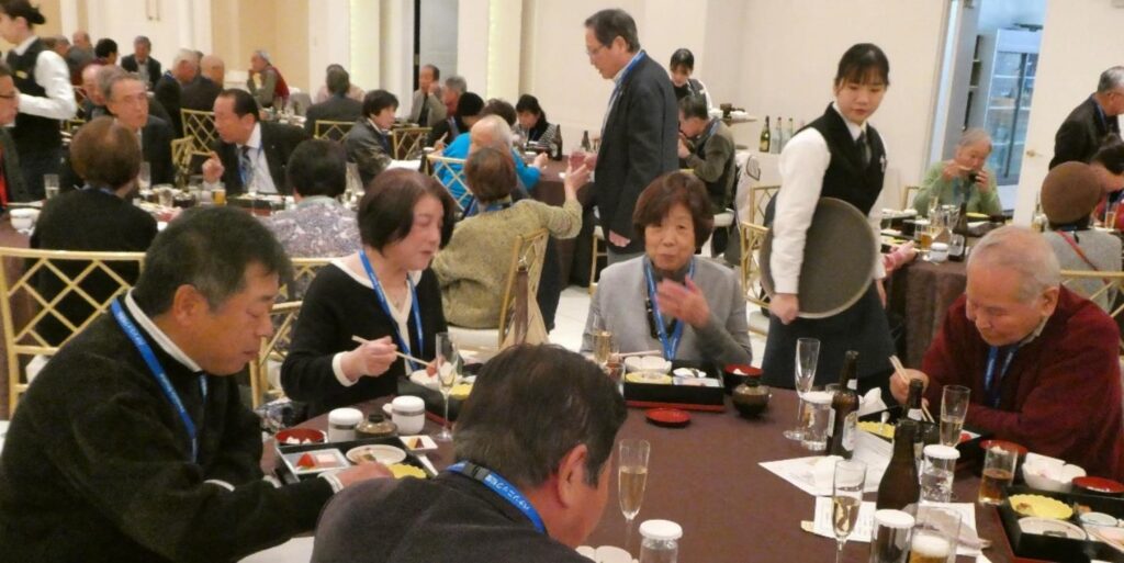 ・本年は、乾杯をシャンパン(スパークリングワイン)で行いました、会場スタッフに一度に栓を抜いて頂き、会場は、軽快に ”パン” ”パン” ”パン”と音が響き渡りました。