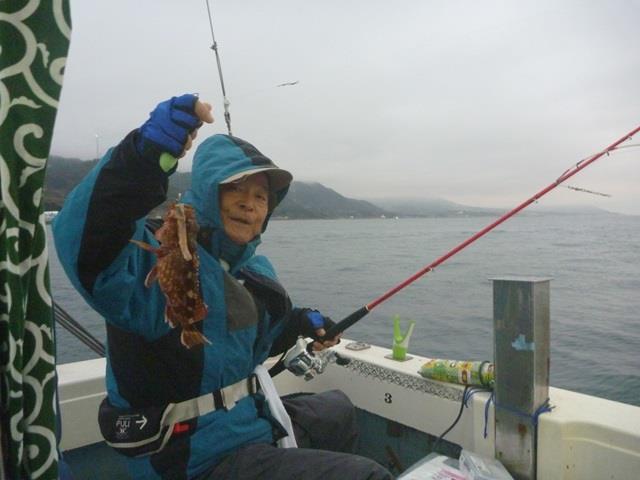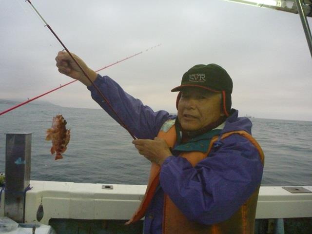 - 大物のガシラが釣れ、笑顔です