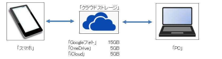 2.「クラウドストレージ」を経由して、スマホとPCを接続する。