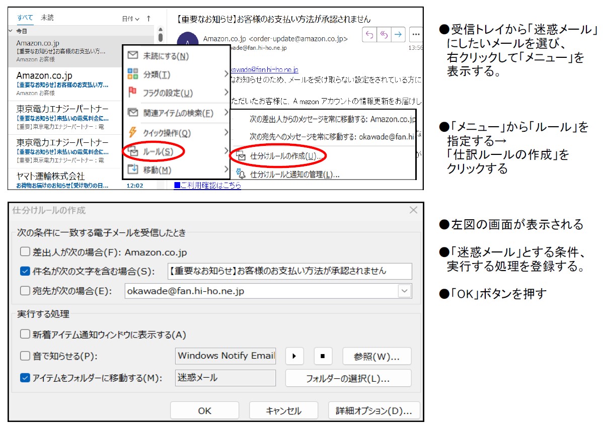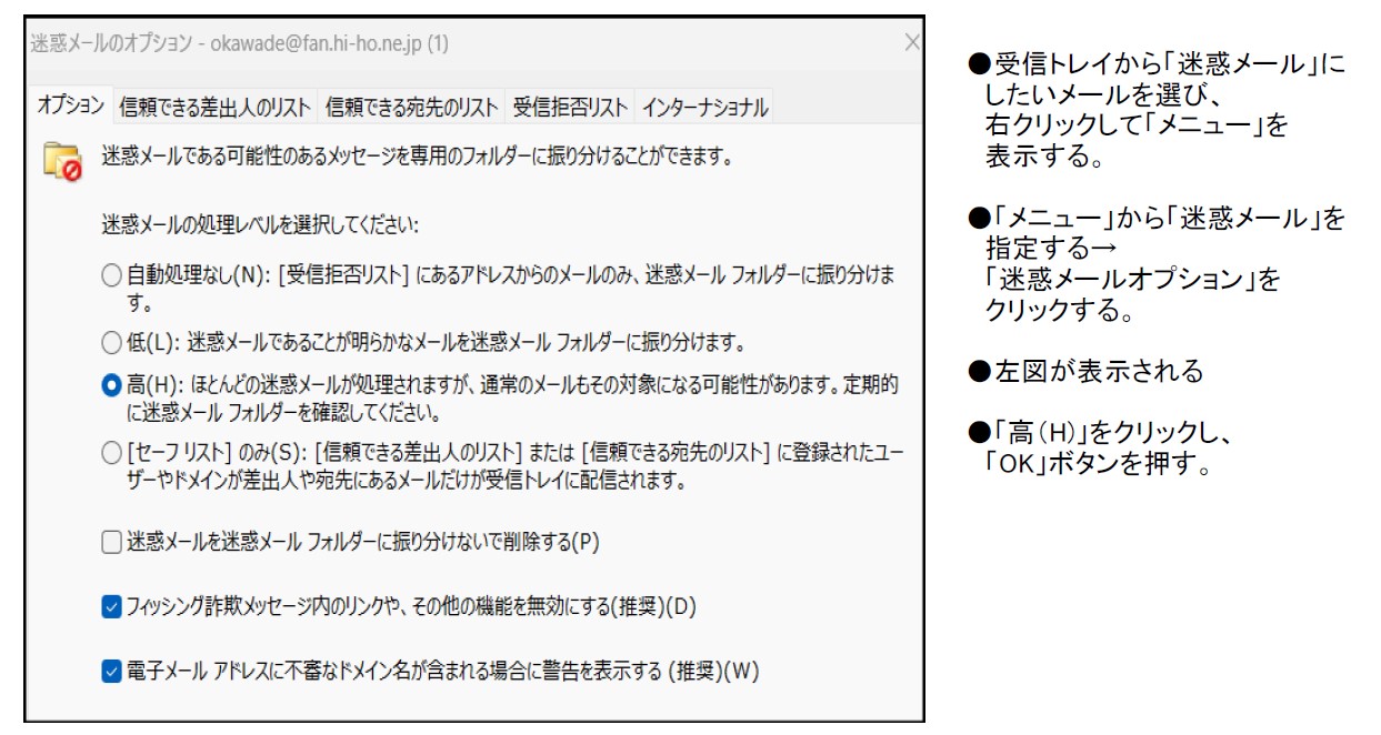 ★「怪しげなメール」を受信しないように、Microsoft Outlook の設定方法を説明します。