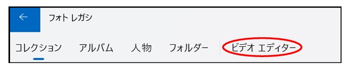 2.「フォトレガシ」を起動し、「ビデオエディター」をクリックする。