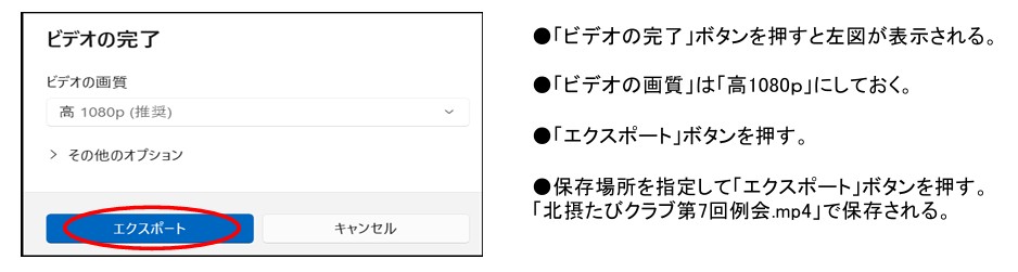 ●動画の編集が終わったら、「ビデオの完了」ボタンを押す。