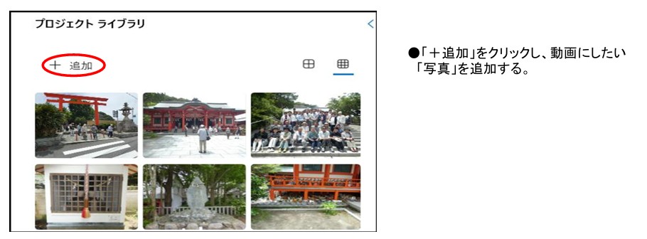 ●「ビデオエディターの編集機能」を使って動画の編集を行う。