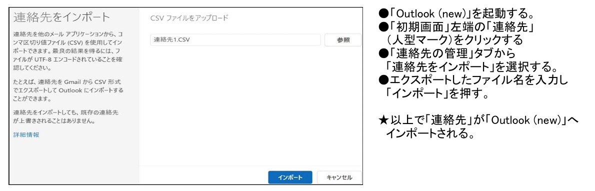 (2)「Outlook (new)」へ「連絡先」をインポートする